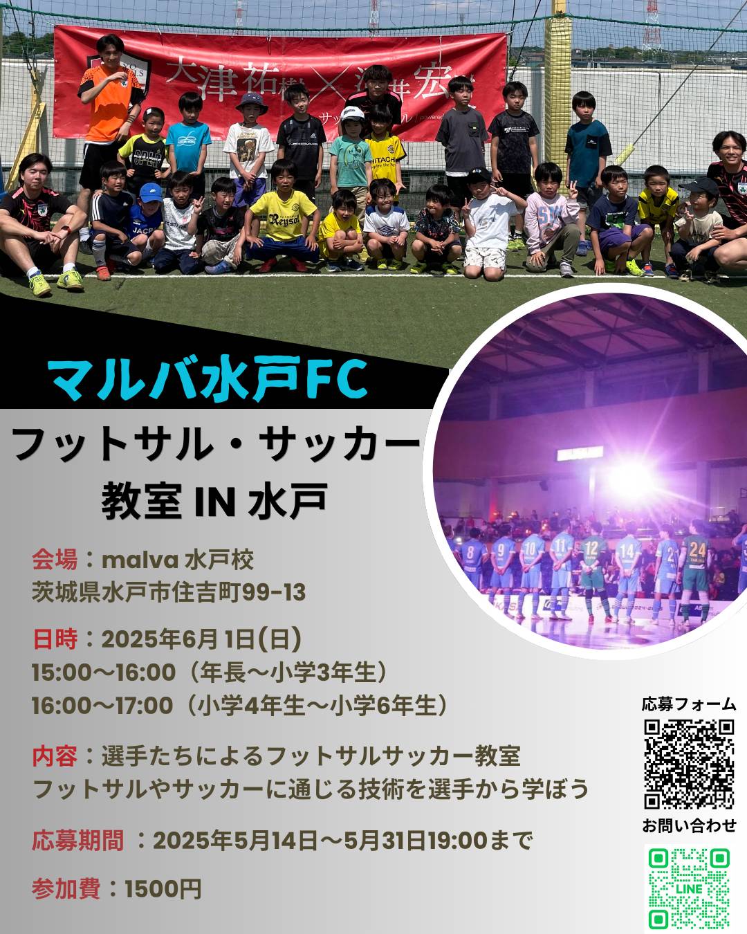 マルバ水戸FCの現役選手と一緒にサッカー・フットサルを体験できる特別教室を開催します!
