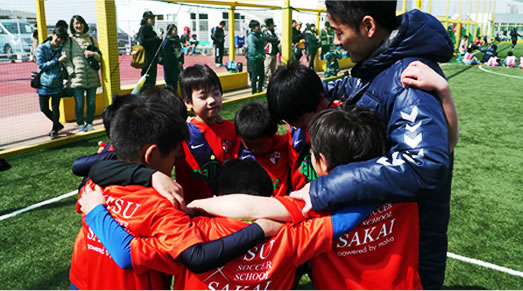 勝ちを望むのであればとことん勝ちを目指して取り組み、その中で子供達には負けや引き分け、嬉しい思い、悔しい思いなど色々な本物の経験を知り成長してもらいたいと考えています。まずは自分を好きになることで相手も好きになり、人に優しさを与えられたりという選手が増えることで、情のある世の中にしていきたいと考えています。